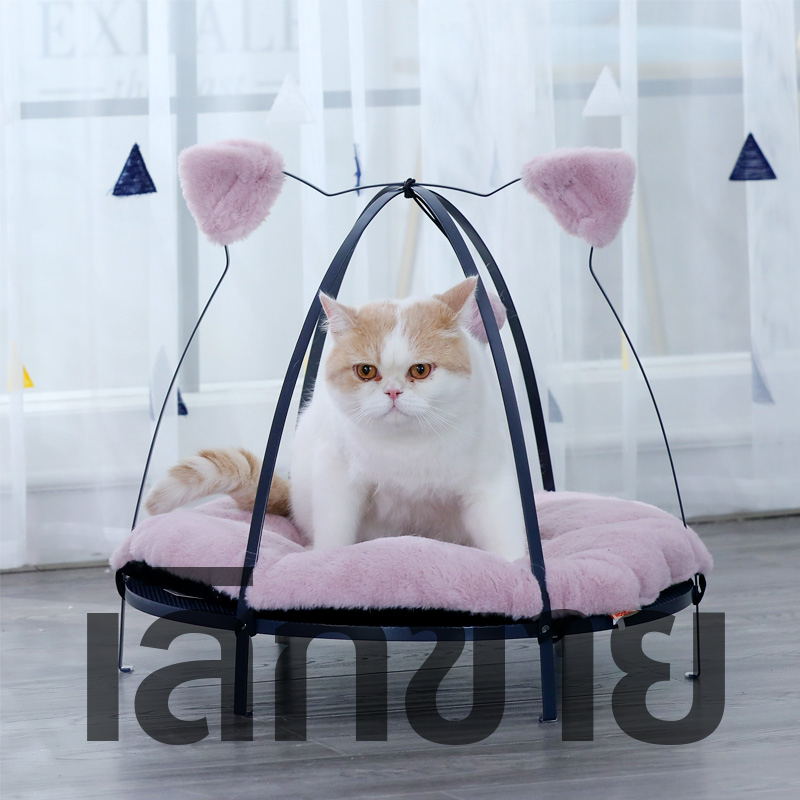 • ที่นอนรูปหูแมวมีเบาะขน สีชมพู